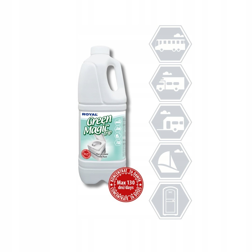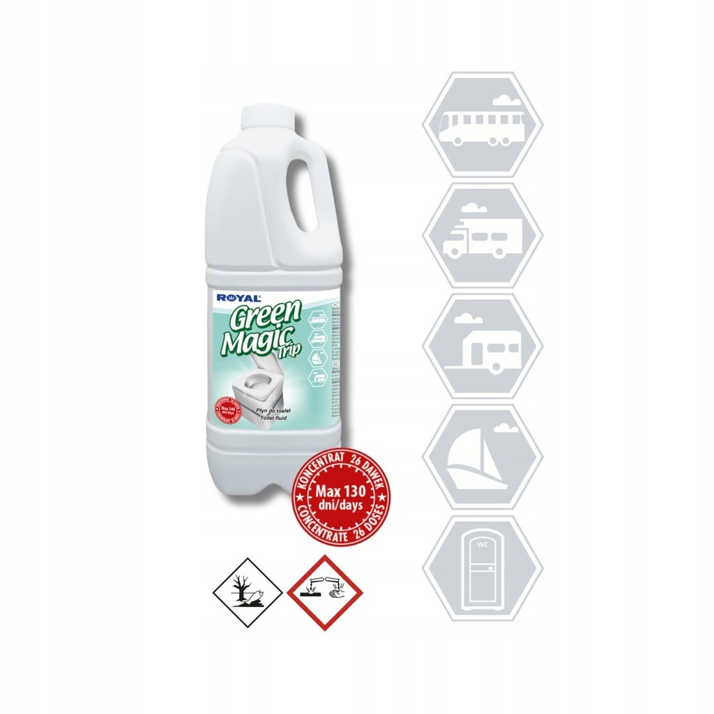 Sposob użycia: Dodać 75ml płynuGREEN MAGIC TRIP do 12-to litrowego, czystego zbiornika na fekalia, a następnie dodać 2 litry wody.