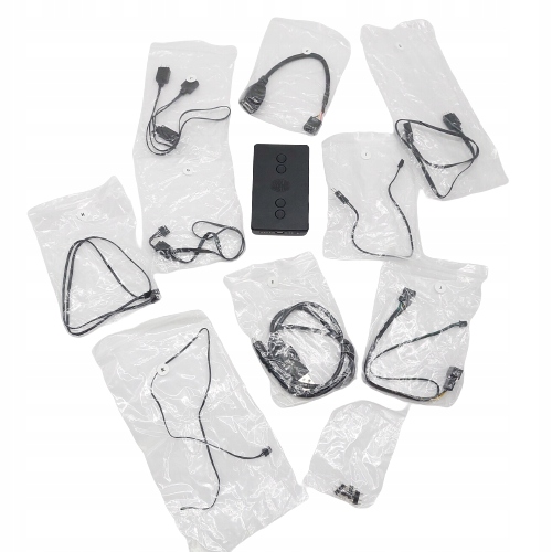 Szeroka kompatybilność: zawiera przewody sygnałowy wentylatora, restartu obudowy, restartu płyty głównej; złącza: 4-pinowe płyty głównej i rgb, głowicy usb, 3-pinowe płyty głównej, 4 x 3-pinowe złącza argb adapter usb, przewód detekcji termicznej