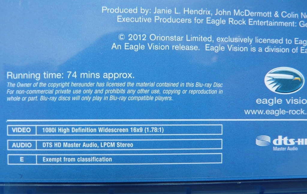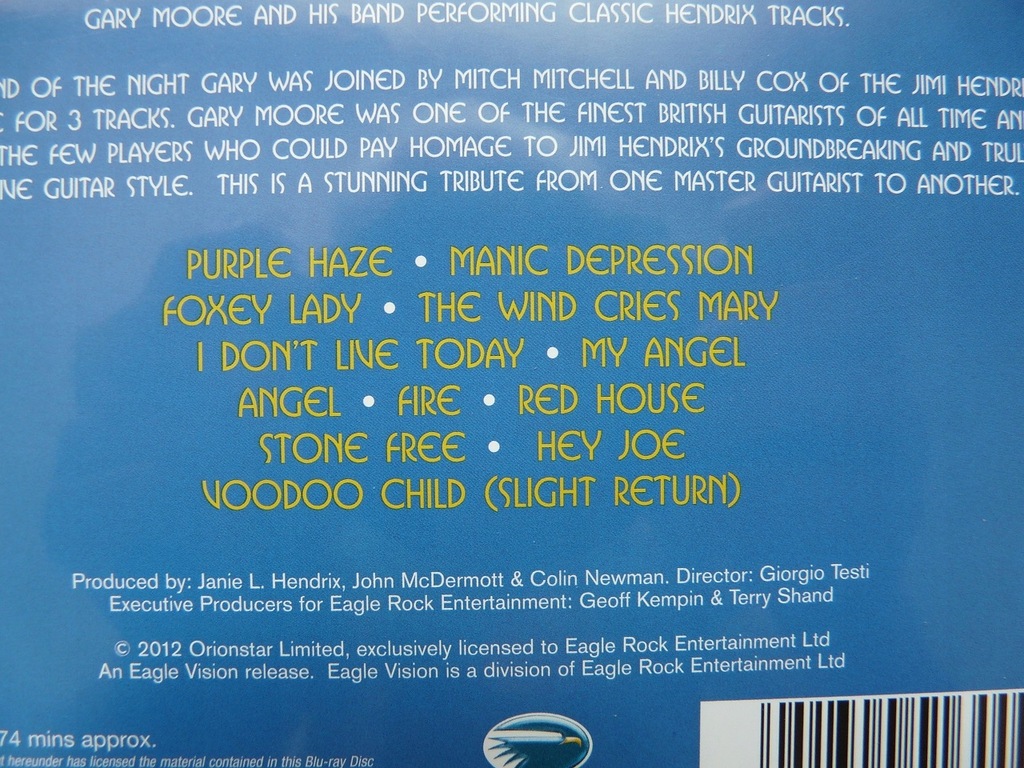 Witam! Proponuję Państwu płytę Blu ray z koncertem Garyego Moore'a poświęconym twórczości Jimiego Hendrixa. Płyta jest nowa, w idealnym stanie. Jak widać na fotkach - nie jest zafoliowana.