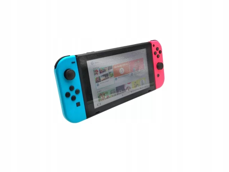 Nintendo Switch. Platforma: Nintendo Switch, Taktowanie procesora: 768 Mhz, Pamięć wideo: 4000 MB. Kolor produktu: Niebieski, Szary, Czerwony, Technologia kontroli gier: Analogowa/Cyfrowa, Klawisze funkcyjne do gier: D-pad. Typ ekranu: LCD, Długość przekątnej ekranu: 15,8 cm (6.2"), Rozdzielczość: 1280 x 720 px. Wbudowana pojemność pamięci: 32 GB, Obsługiwane typy kart pamięci: MicroSD (TransFlash), MicroSDHC, MicroSDXC, Maksymalny rozmiar karty pamięci: 2000 GB. Standardy Wi- Fi: 802.11a, 802.11b, 802.11g, Wi-Fi 4 (802.11n), Wi-Fi 5 (802.11ac)