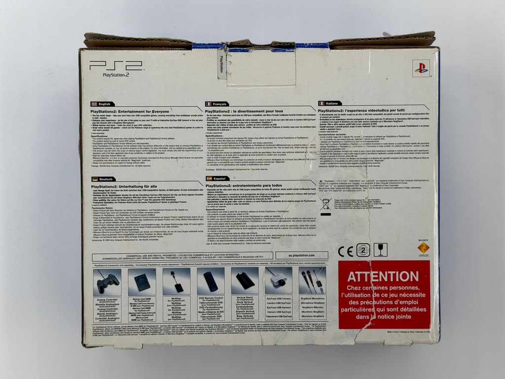 Pudełko w dostatecznym stanie. Konsola czyta płyty ps1 i ps2 po lekkiej chwili, w dobrym stanie wizualnym słychać jak pracuje laser, joystick w dobrym stanie, w pełni sprawny.
