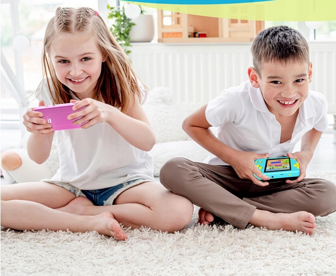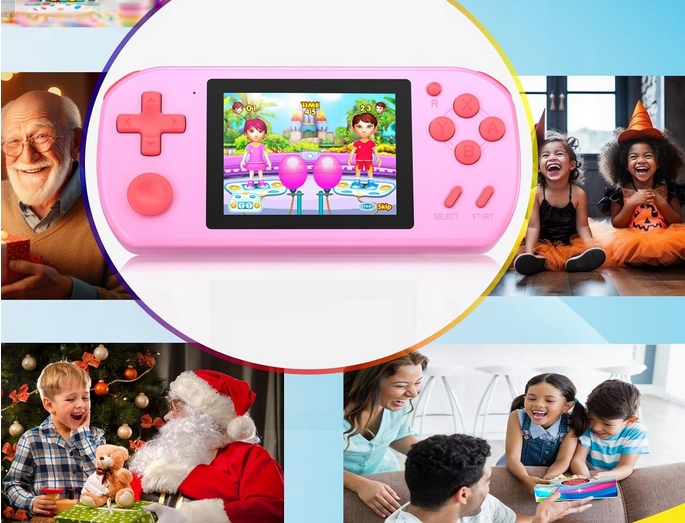 �NOWATORSKI PROJEKT: Ta przenośna konsola do gier ma stylowy design z blokami kolorów. Darmowa z wstępnie załadowanymi 268 klasycznymi grami. Dołącz joystick z tą samą funkcją co przycisk kierunkowy, aby doświadczyć zabawy w trybie arcade. To świetny prezent urodzinowy dla dziecka, prezent świąteczny!