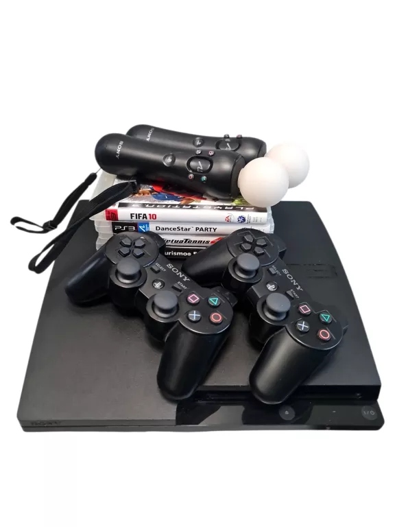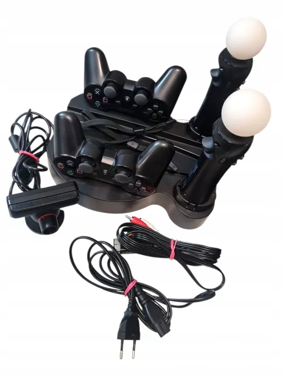 W komplecie: konsola, 2x pad, 2x mowe, kamerka, ładowarka, okablowanie, gry