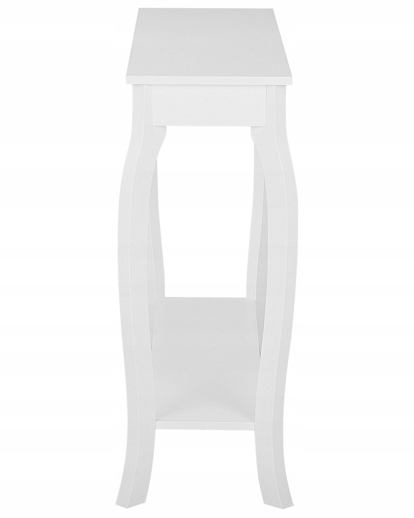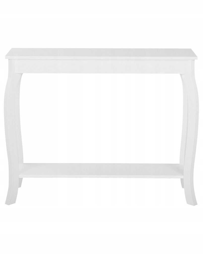 Dodaj swojemu wnętrzu odrobinę paryskiego szyku, za sprawą tej inspirowanej stylem prowansalskim konsoli. Minimalistyczny biały blat i smukłe, gięte nogi nadają stolikowi elegancji, dzięki czemu doskonale wpasowuje się we wnętrza w stylu vintage i glamour. Ponadczasowy design i wysoka jakość wykonania sprawiają, że konsola będzie służyła przez długi czas. Dodatkowo dolna półka stanowi idealne miejsce na wszelkie dodatki i akcesoria dekoracyjne.