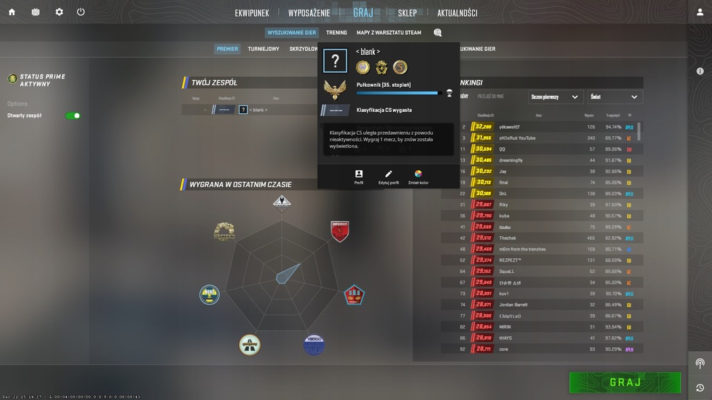 - Brak jakichkolwiek banów (VAC, overwatch, kara czasowa itp.),