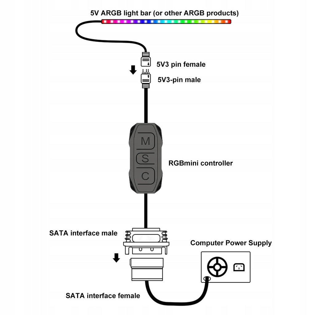 ✨Funkcja:⭐5V 3PIN: Kontroler ARGB umożliwia sterowanie oświetleniem produktów 5V 3pin ARGB z wbudowanym trybem oświetlenia. Zasilanie jest dostarczane przez SATA zasilacza UPS i nie wymaga obsługi płyty głównej.