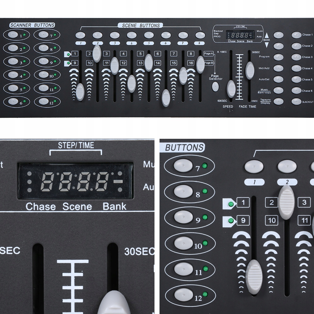 Ta przenośna konsola 192 to standardowy uniwersalny kontroler DMX 512, kontrolujący do 192 kanałów DMX. Bądź idealny, aby bez wysiłku kontrolować wiele efektów świetlnych jednocześnie. To doskonała równowaga między kosztami, wygodą użytkowania i niezwykłymi funkcjami. Dobry wybór dla tych, którzy naprawdę chcą dobrze wykorzystać swoje oświetlenie i efekty. Idealny dla DJ-ów, szkolnych koncertów lub każdej zwykłej imprezy.