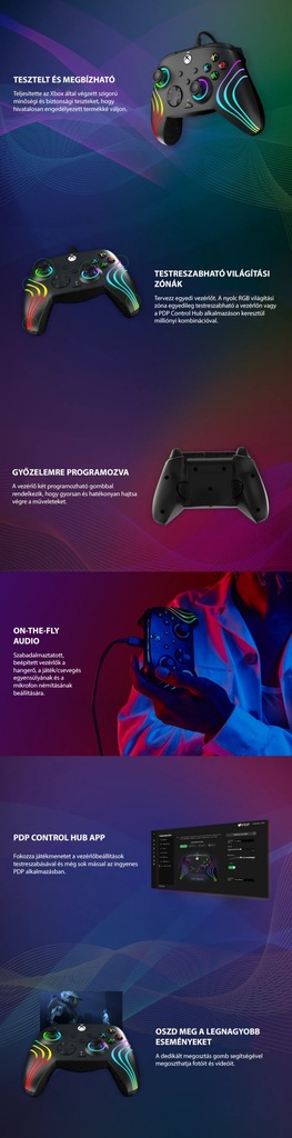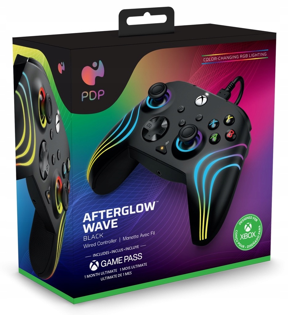 Rzuć na swój zestaw gamingowy nowe światło za sprawą kontrolera przewodowego Black Afterglow Wave na konsolę Xbox! Ten oficjalnie licencjonowany kontroler pozwala personalizować rozgrywkę, tworzyć kolorowe efekty i dużo więcej. Wywołaj fale wielu barw i kombinacji kolorystycznych, konfigurując światła RGB i ustawienia kontrolera przewodowego Afterglow Wave. Zmieniaj efekty świetlne i kolory przyciskiem „funkcyjnym” lub pobierz aplikację PDP Control Hub, żeby dostosować osiem stref oświetlenia RGB i nie tylko.