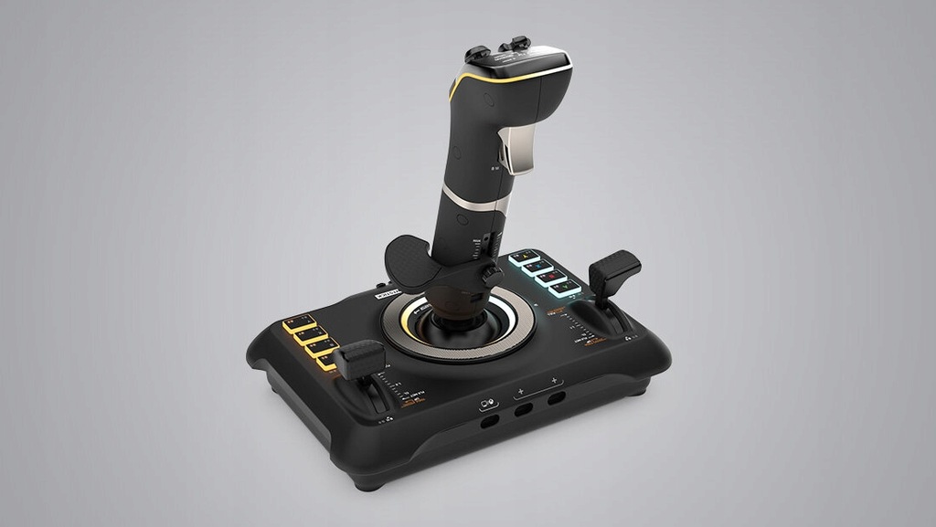 27 programowalnych przycisków ułatwiających spust ognia czy kontrolę funkcji lotu, 8-kierunkowy cyfrowy przełącznik POV, dźwignia przepustnicy i klap do sterowania mocą silnika głównego czy podnoszenia maszyny to nie opis Airbusa, a prawdziwe możliwości VelocityOne Flightstick. Dzięki temu poczujesz się jak pilot siadający za sterami realnej, latającej maszyny.