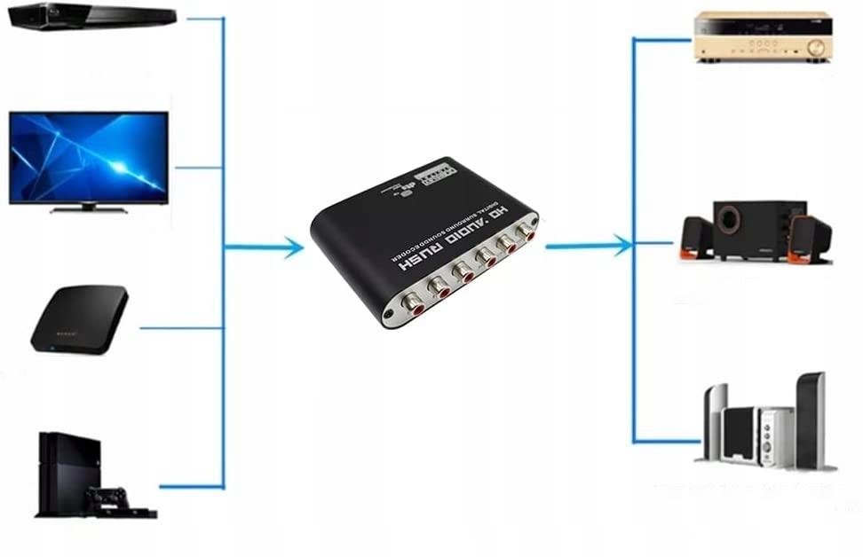 5. Wielokanałowy przełącznik jednodotykowy, wygodny i szybki, podczas gdy przełącznik stereo i 5.1-kanałowy