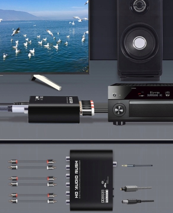 Dekoder dźwięku DTS / AC3 jest szeroko stosowany do dekodowania źródła dźwięku z odtwarzaczy audio-wideo, takich jak komputery PC, notebooki, PS3, XBOX360, odtwarzacz HD, dekoder HD, DM500 / DM800, Blu-ray DVD i HD-DTS /Dolby Sound Field, dzięki czemu wiele rodzin, szkół, placów, sal koncertowych, kin i innych miejsc, aby cieszyć się polem dźwiękowym DTS lub Dolby przyniosło efekt szoku.