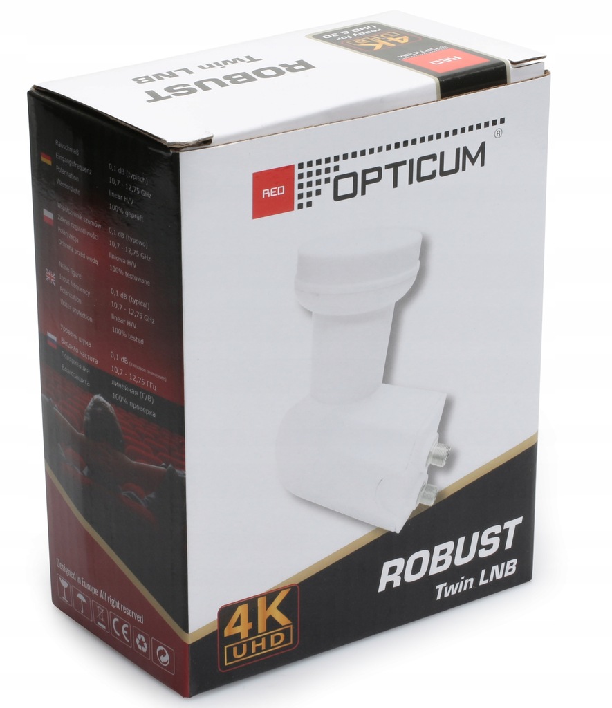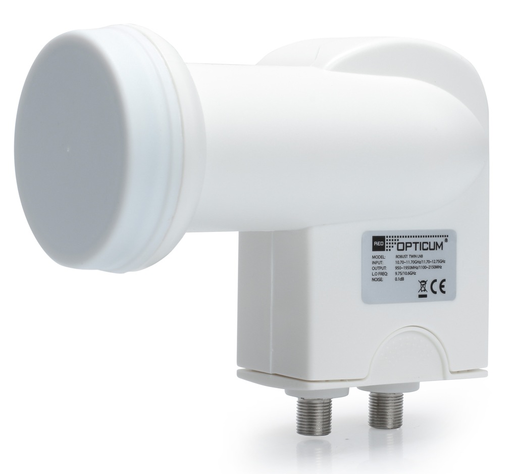 Podwójny konwerter marki Opticum typu Twin służy do odbioru sygnału z jednego satelity przez dwa niezależne tunery lub do tunerów z dwoma wejściami. Posiada osłonę przeciwdeszczową.