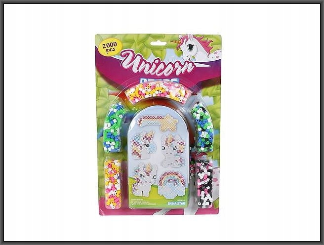 Ten zestaw koralików to doskonały pomysł na kreatywną zabawę, która pobudzi kreatywność i wyobraźnię oraz rozwinie zdolności manualne i plastyczne. W zestawie znajduje się wiele koralików w różnych podstawowych kolorach. Dziecko stworzy z nich jednorożca, tęczę i nie tylko. Gdy wzór będzie gotowy, przykryj koraliki papierem i przyprasuj je przez kilka sekund ciepłym/gorącym żelazkiem, tak by koraliki stopiły się razem. Po zaprasowaniu pozostaw wzór do ochłodzenia na kilka minut. Stworzona przez ciebie forma będzie idealną ozdobą pokoju lub wspaniałym prezentem dla bliskiej osoby. Zawartość: - 2000 kolorowych koralików, - 2 formy kwadratowe, - arkusz ze wzorami, - narzędzie ułatwiające pobieranie koralików, - instrukcja. Wymiary opakowania: 20x29x3cm