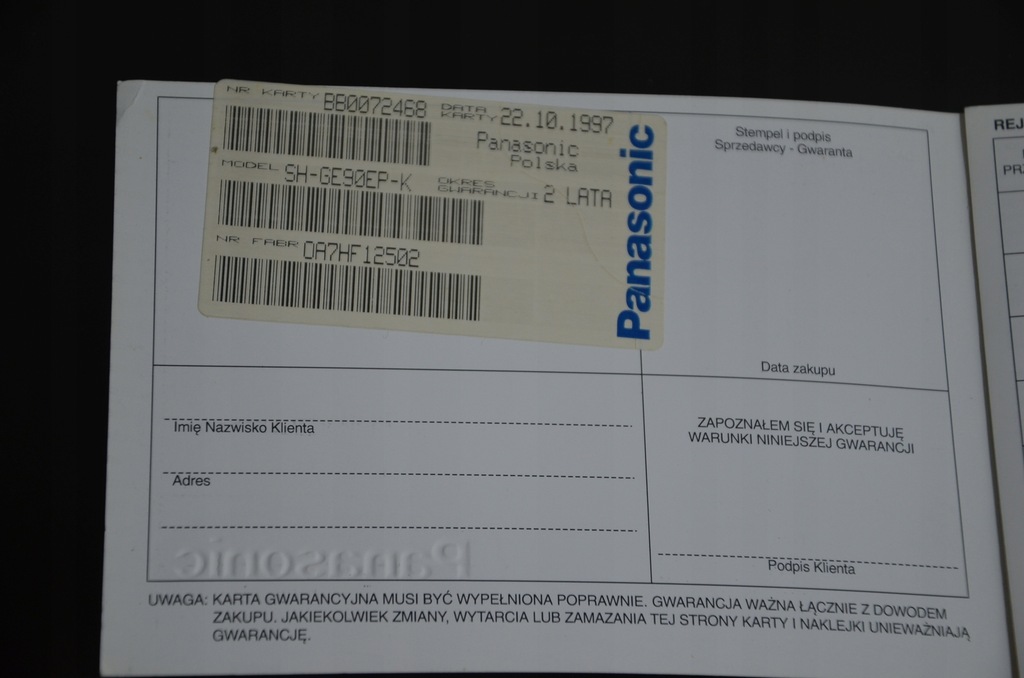 SPRZĘT OD JEDNEGO WŁAŚCICIELA Z POLSKIEGO SKLEPU, KARTA GWARANCYJNA Z 1997r + INSTRUKCJA