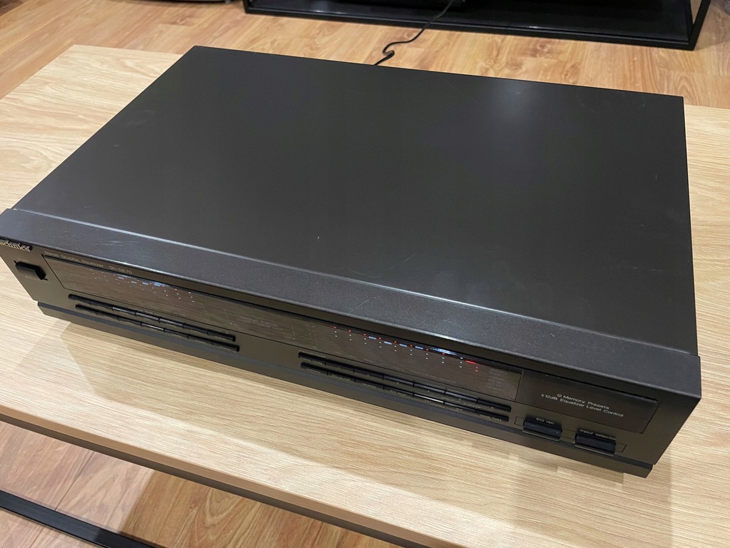 Sprzedam korektor graficzny Technics SH-GE70. Stan wizualny widoczny na zdjęciach - normalne, drobne ślady użytkowania. Wszystkie funkcje działają poprawnie. W zestawie kabel zasilający.