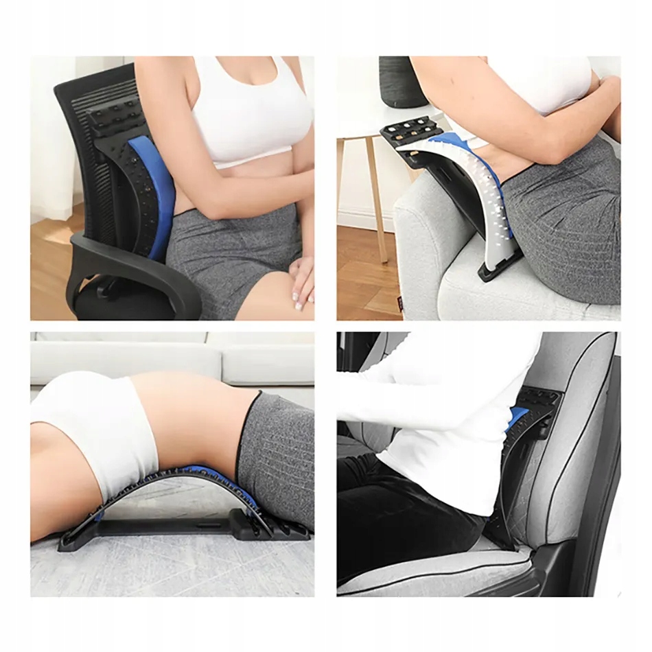 Urządzenie można ustawić w trzech pozycjach w zależności od stopnia problemu z kręgosłupem. Wystarczy wybrać odpowiednią wysokość urządzenia, położyć się na plecach opierając kręgosłup lędźwiowy na przyrządzie i zrelaksować. Nie trzeba męczyć się z matami akupunkturowymi czy jogą aby wspomóc swój kręgosłup. Przyrząd jest bardzo lekki, wykonany z wytrzymałego tworzywa i kompaktowy. Dzięki temu z łatwością można go zabrać na wakacje lub w podróż służbową.