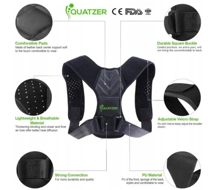 Nadaje się do prania. Korektor postawy jest regulowany. Zaprojektowany dla kobiet, mężczyzn i dzieci z szerokimi lub wąskimi ramionami. Dzięki szerokim szelką można uniknąć napięcia pod pachami lub uniknąć problemów z podrażnieniem.