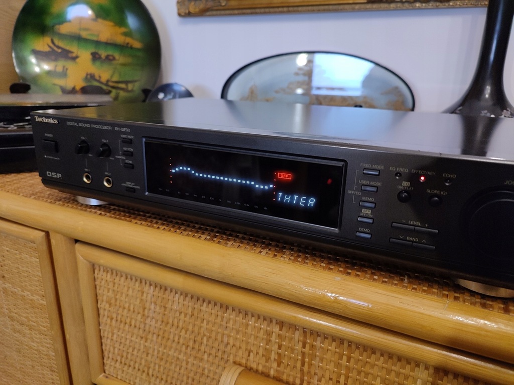 Technics SH-GE90 jako cyfrowy procesor/korektor doskonale sprawdza się, zarówno do systemów DVD jak i AUDIO – dzięki niemu można samodzielnie ustawić dźwięk do swoich indywidualnych upodobań. Dodatkowo posiada on wiele ciekawych funkcji np. Karaoke. Procesor wyposażony jest również w duży, bardzo czytelny wyświetlacz pokazujący zakres pasma odtwarzanego dźwięku, który robi naprawdę duże wrażenie. Sprzęt ten ma bardzo wysokie parametry dźwiękowe oraz duże możliwości dostosowania barwy dźwięku według naszego uznania. Ma możliwość skonfigurowania własnych ustawień i zapisania ich. Analizator widma może pracować w 3 trybach wyświetlania. Możliwości tego korektora są ogromne, pozwala odkryć każdy zestaw audio na nowo, może dodać basu , przejrzystości , po prostu ustawić dźwięk tak jak lubimy. I wiadomo strona wizualna - nic tak nie zwraca uwagi jak słupki korektora skaczące w rytm muzyki.