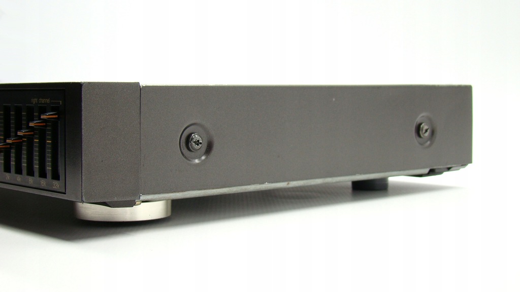 Bardzo szeroki zakres korekcji, regulacja aż 12 pasm częstotliwości już od 16Hz do 32kHz na każdy kanał osobno. Tak szeroki zakres korekcji stawia ten korektor na czele najlepszych, o największych możliwościach dostosowania dźwięku do własnych preferencji odsłuchowych wśród korektorów graficznych.
