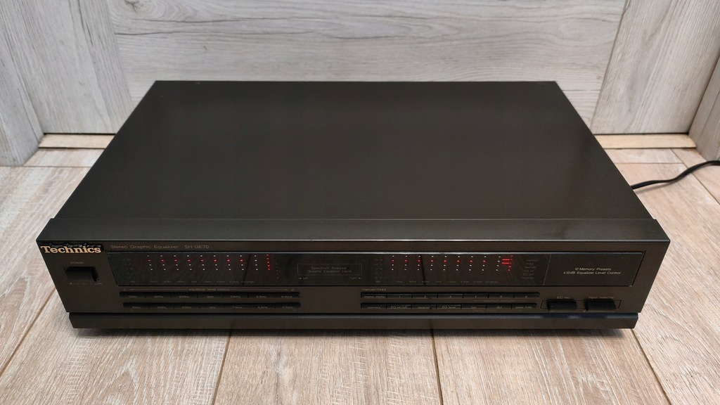 posiadam na sprzedaż korektor graficzny TECHNICS SH GE70 w kolorze czarnym. Stan wizualny widoczny na zdjęciach powyżej. Moim zdaniem, jak na swoje lata, jest w bardzo dobrym stanie. Panel przedni z napisami niepoprzecieranymi, wszystko czytelne. Obudowa posiada drobne ślady użytkowania. Korektor odziedziczyłem po tacie, w rodzinie od nowości. Korektor był podłączony pod wieżę, wejście cinch sprawne.