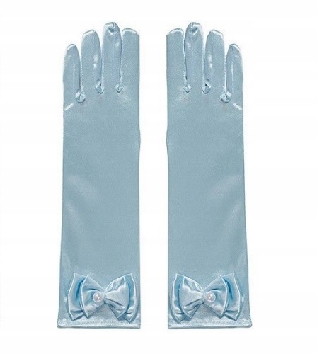 Rękawiczki są wykonane z niebieskiej rozciągliwej lycry. Ozdobione uroczymi kokardkami. Rozmiar jest uniwersalny.