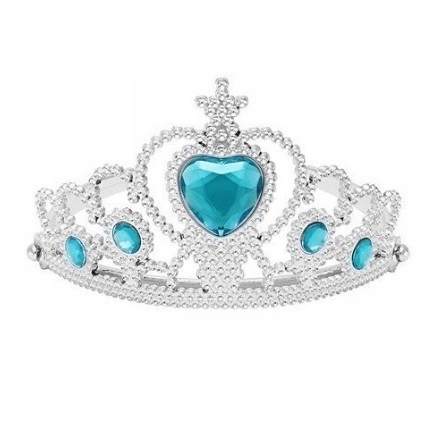 - Korona, zdobiona niebieskimi kryształkami, srebrna, mocowana do opaski rozmiar uniwersalny