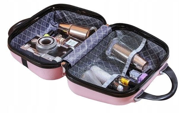 Kuferek wyposażony jest w wygodny, miękki uchwyt, co ułatwia transport. Gumka umożliwiająca przymocowanie kuferka do rączki większej walizki na kółkach sprawia, że jest on niesamowicie praktyczny podczas podróży. Zamek błyskawiczny zapewnia łatwy dostęp do wnętrza, a wodoodporna konstrukcja oznacza, że Twoje kosmetyki są zawsze chronione, nawet w przypadku niespodziewanych wypadków.