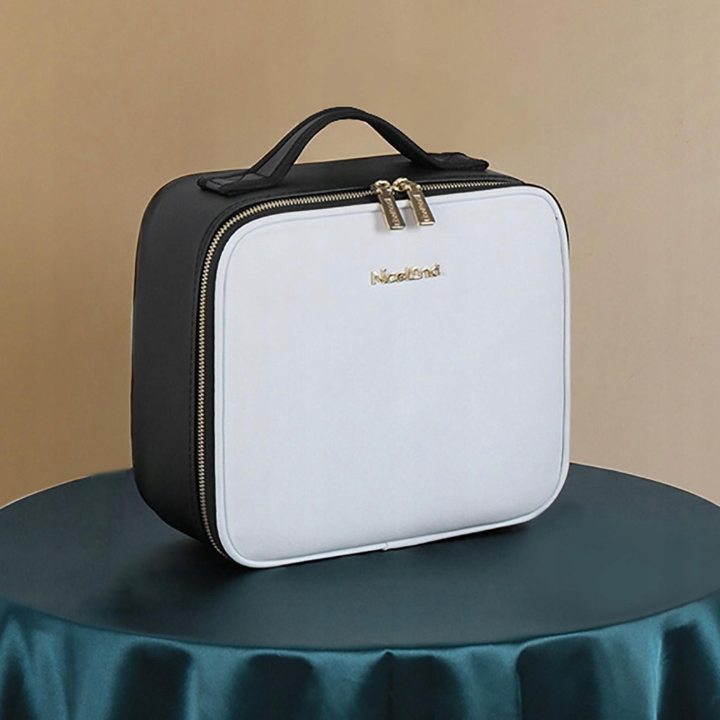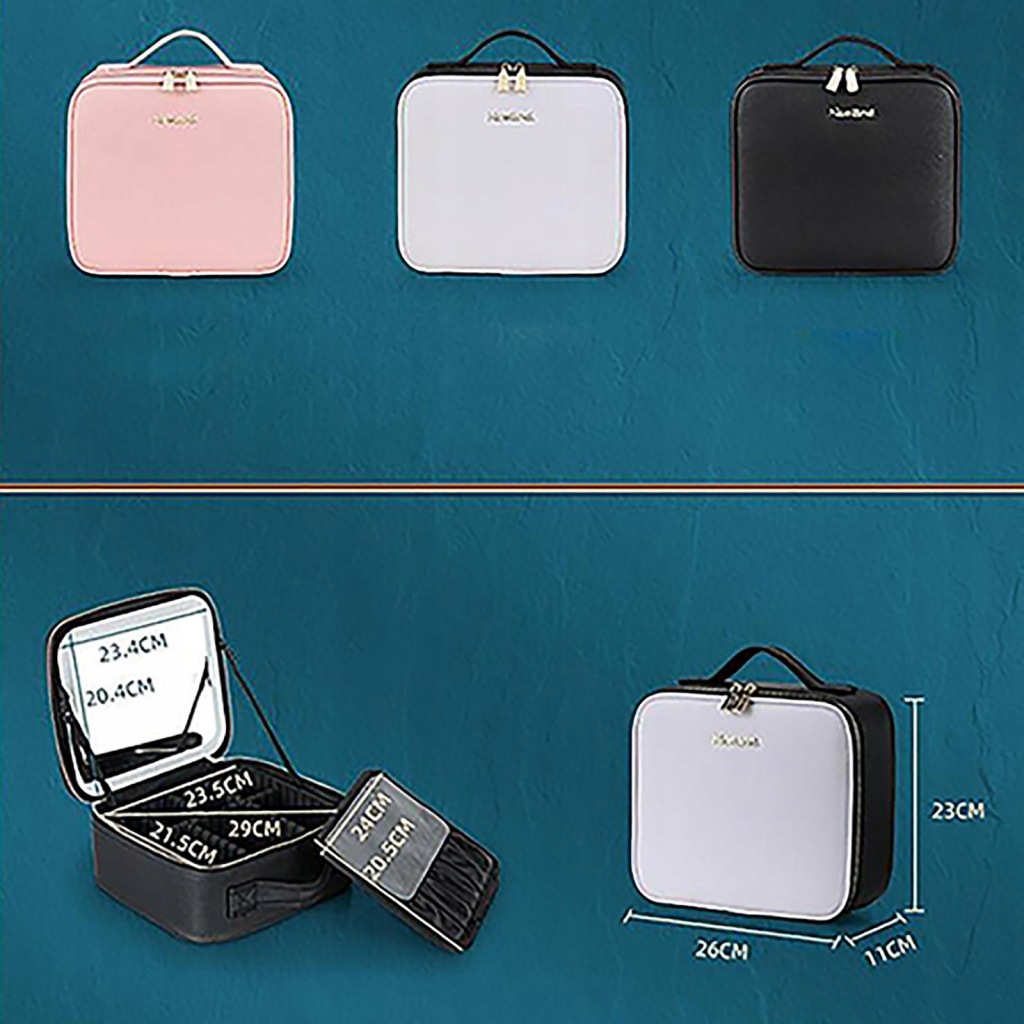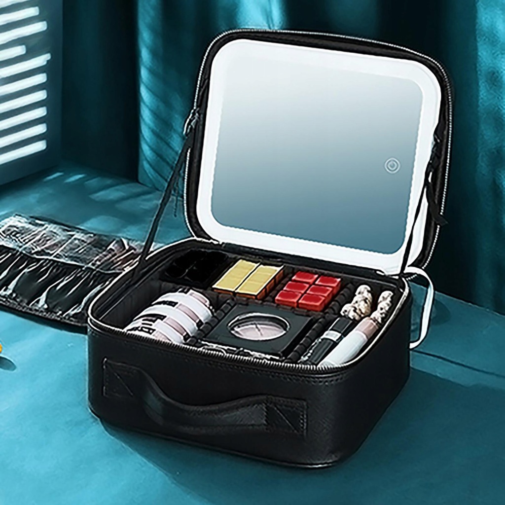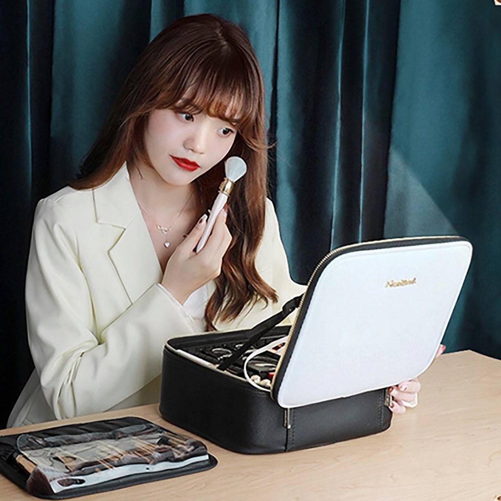 Kosmetyczka z regulowanym lustrem LED: Nasza kosmetyczka ma regulowane diody LED, 3-poziomowe światło (3200k-4800k-7300k) dla Twojej satysfakcji i poprawia klarowność twarzy dla prawidłowego makijażu dzięki regulowanemu lusterku, aby uzyskać bliższy i wyraźniejszy