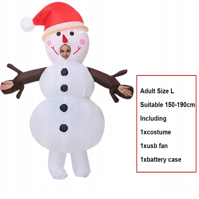 Pakiet1 * kostium1 * wentylator USB1 * obudowa baterii (bez baterii)Materiał:100% poliesterFunkcje:Wentylatory o prędkości utrzymują kostium napompowany całą drogę, można użyć opakowanie na baterie (zainstalować baterię 4xAA)Nadaje się na imprezy, Halloween, przyjęcia urodzinowe, parki, zdjęcia, transmisje na żywo itp.