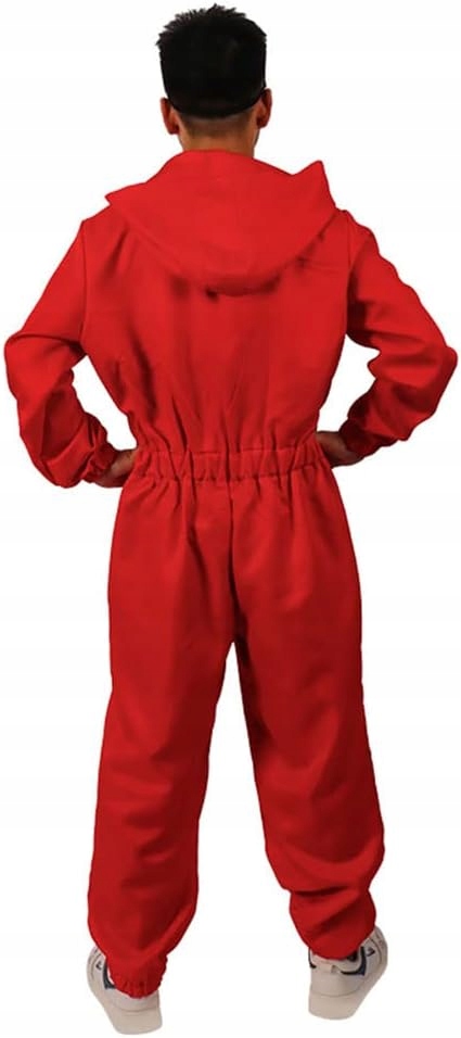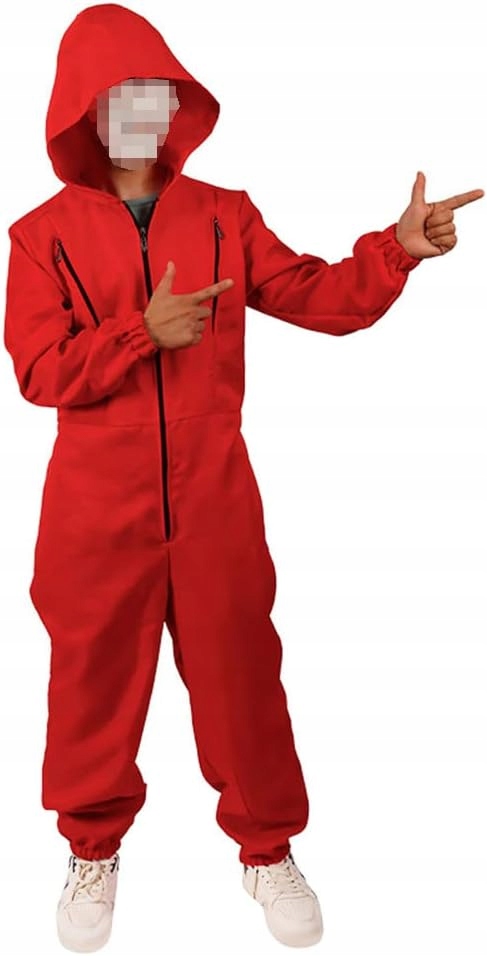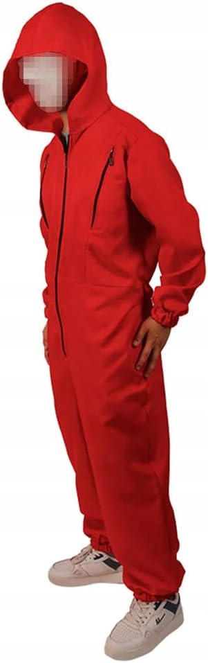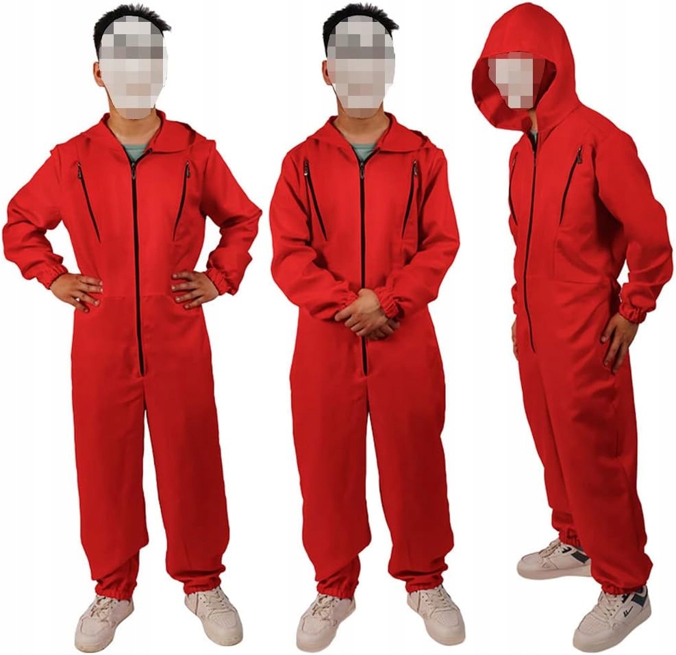 Wykwintny design: przywróć maskę wzoru z filmu oraz miękki i wygodny czerwony kombinezon z kapturem, to świetny zestaw dla miłośników cosplayu.Wysokiej jakości materiał: dzięki wysokiej jakości poliestrowi czerwony kombinezon nie ulega łatwo rozdarciu, jest w stanie wytrzymać nawet nagłe zachlapanie napojami. Ponadto kombinezon jest oddychający i można go nosić godzinami.