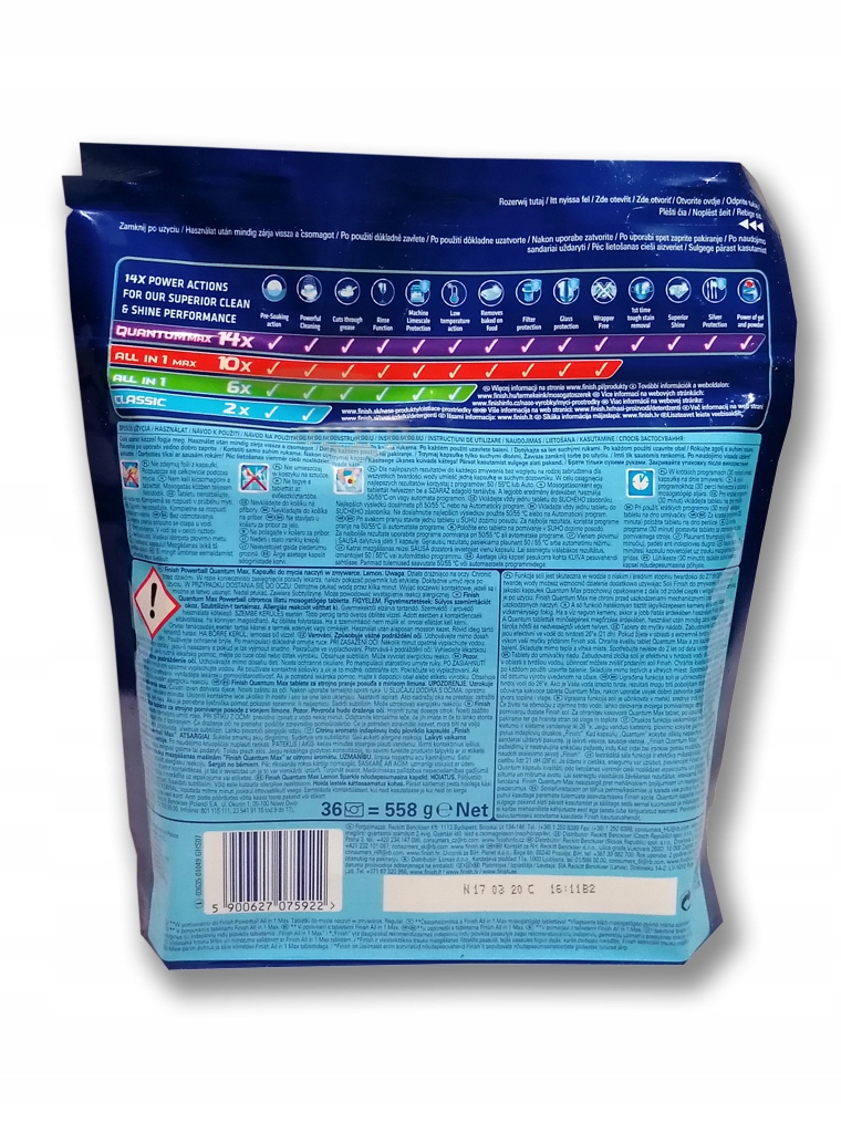 Tabletki do zmywarki Finish Quantum Max nadają naczyniom oczekiwaną czystość i połysk. Tabletki do zmywarki Finish Quantum Max są sprzedawane w torebkach z systemem wielokrotnego zamykania, więc nie trzeba rozpakowywać każdej tabletki osobno.