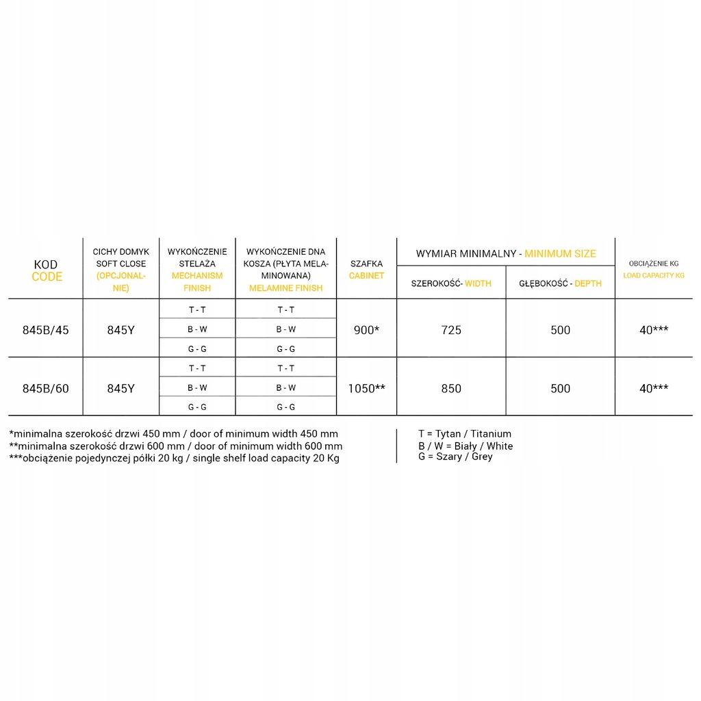 Zastosowanie: Do szafek kuchennych narożnych