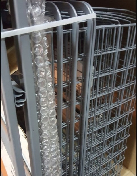 Pojemnik druciany z możliwością nadbudowania jeden na drugim ma sześć mniejszych koszyków i dwa większe, które umożliwiają przechowywanie wszelkiego rodzaju zabawek, ubrań i narzędzi.