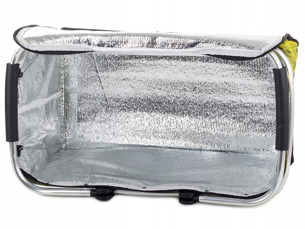 Wnętrze kosza zostało wyłożone folią termiczną, która stanowi doskonałą izolację dla znajdujących się w nim żywności. Wierzch kosza zamykany jest na zamek błyskawiczny.