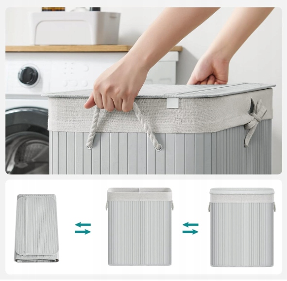- ▶️Co dostajesz: Kosz na pranie marki SONGMICS, który wykonany jest z bambusa i posiada 2 oddzielne komory. Dzięki tej skrzyni można łatwo posortować ciemne, jak i jasne ubrania przed dniem prania
