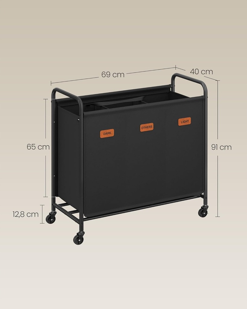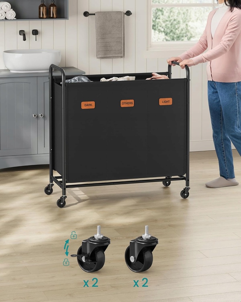 Kosz na pranie mobilny 3 komorowy 170L sorter wózek na pranie 69x40x91 cm