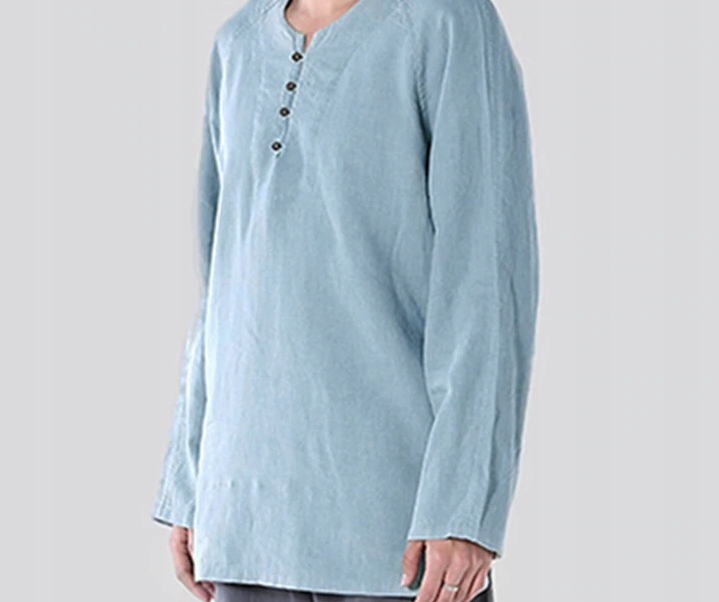 Koszula - tunika w klimacie etno. Niebieska z brązowymi guziczkami.