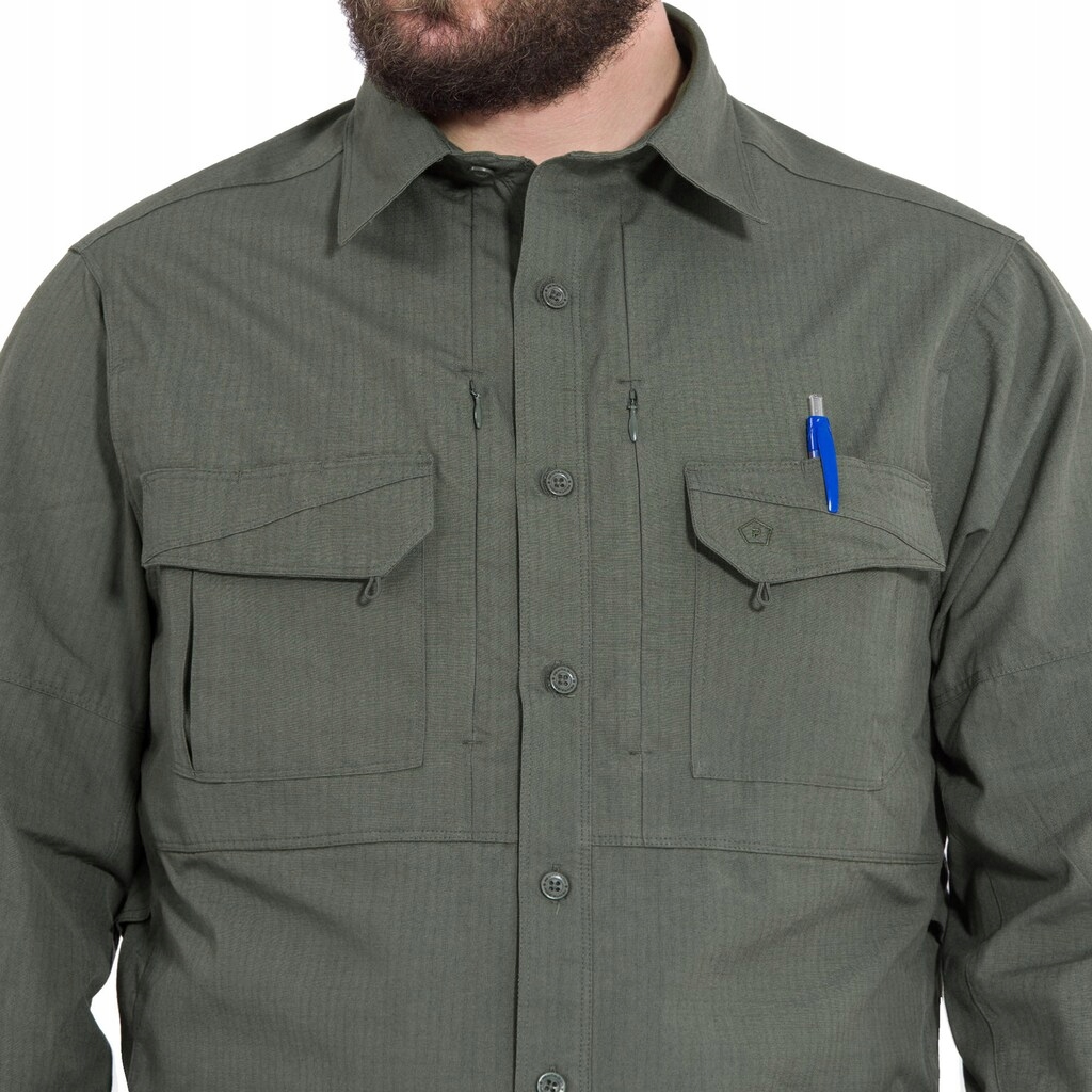 Koszula taktyczna Plato zapewnia komfort i funkcjonalność dzięki użyciu krótkoschnącego materiału mieszanego firmy DuPont, wyprodukowanego z najwyższej jakości bawełny i poliestru z dodatkiem teflonu. Splot RipStop, odporny na rozerwanie, sprawdzi się w różnorodnych warunkach, zarówno na terenie jak i miejskich sceneriach.