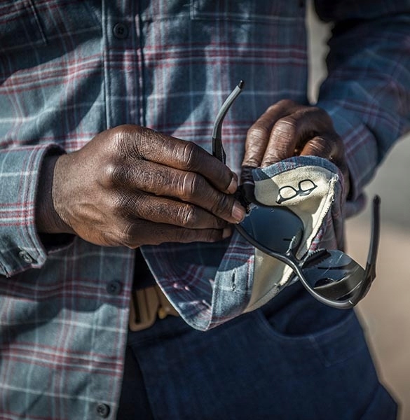 Klasyczny fason, z zapinanymi na guziki kieszeniami na piersi, zapinanym na guziki frontem oraz mankietami, pozwoli z nadzwyczajną łatwością wtopić się w tłum. Najcenniejsze przedmioty bezpiecznie schowasz w ukrytej, wewnętrznej kieszeni zapinanej na zamek. Równie użytecznym i niewidocznym elementem koszuli jest specjalny kawałek delikatnej tkaniny do czyszczenia okularów, wkomponowany w jeden z jej boków.