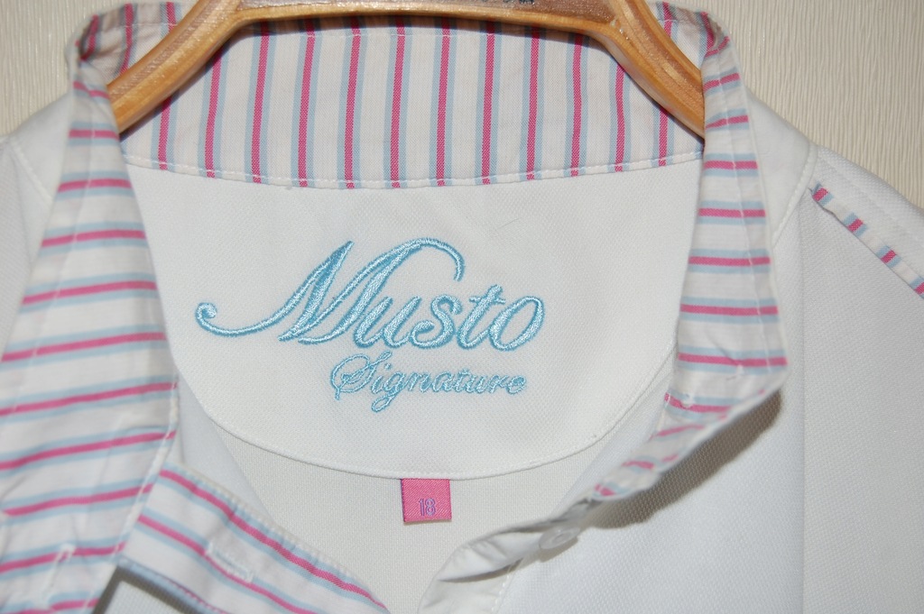 przedmiotem sprzedaży jest koszulka z krótkim rękawem MUSTO. Kołnierzyk stójka, koszulka zapinana na kryte guziki, ozdobiona niewielkim haftem i listwami. Wykonana w 100% z poliestru. Stan dobry, widoczne kilka niegroźnych zaciągnięć, do odświeżenia. Polecam i zapraszam do udziału w aukcji!