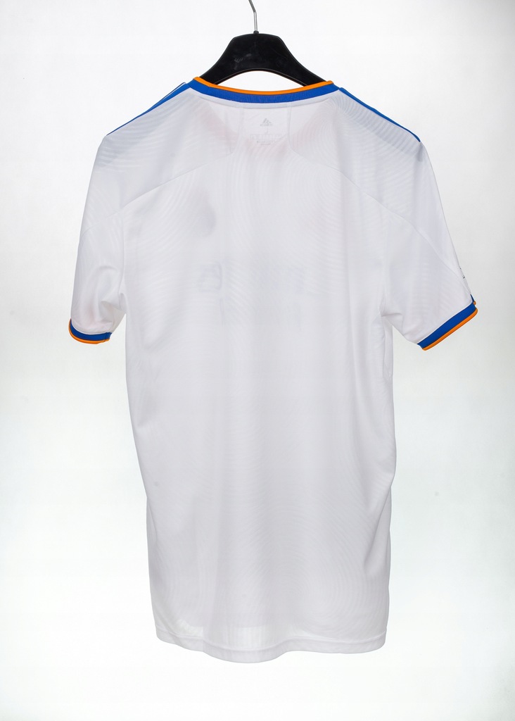 Oryginalna domowa koszulka domowa Realu Madryt na sezon 2021/22 w rozmiarze M. Markowy produkt Adidas posiadający komplet metek.