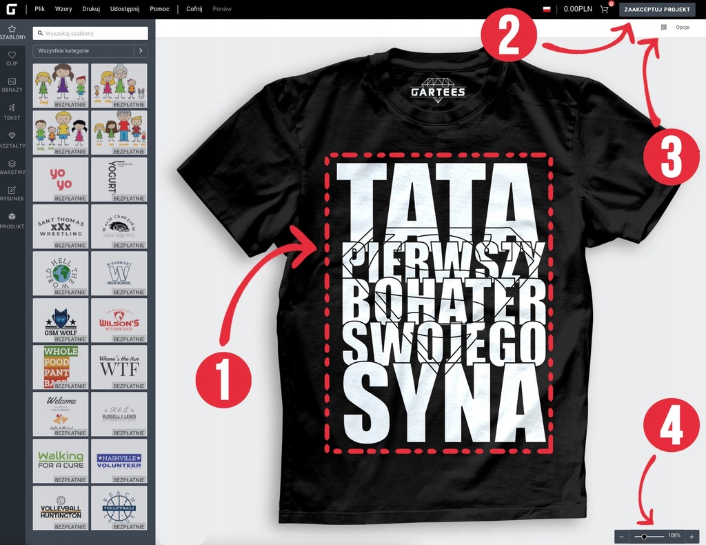 (2) 2️⃣ Przycisk dzięki któremu akceptujesz wygląd koszulki i przechodzisz do karty do wysyłki projektu prosto do drukarza na produkcję