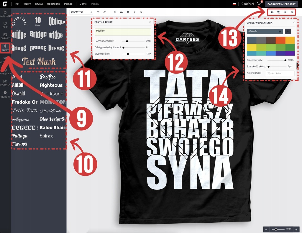 (10) 1️⃣0️⃣ Tutaj znajdują się fonty, wybierz krój pisma jaki Ci odpowiada i dodaj swój dowolny napis