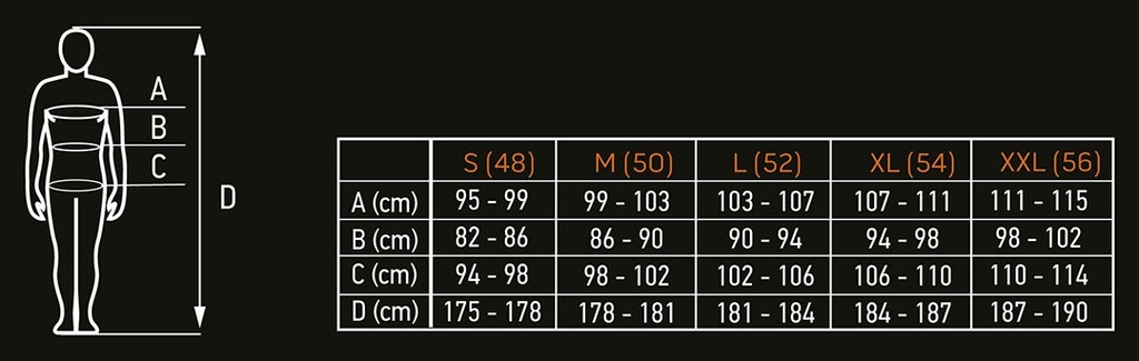 - Szerokość klatka piersiowa: 54 cm