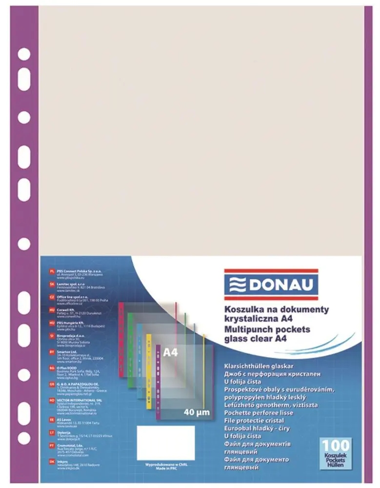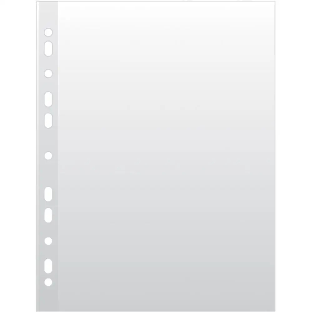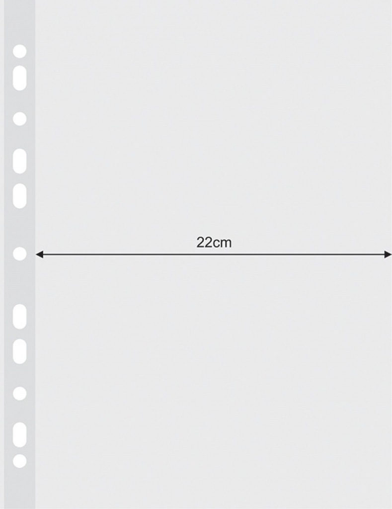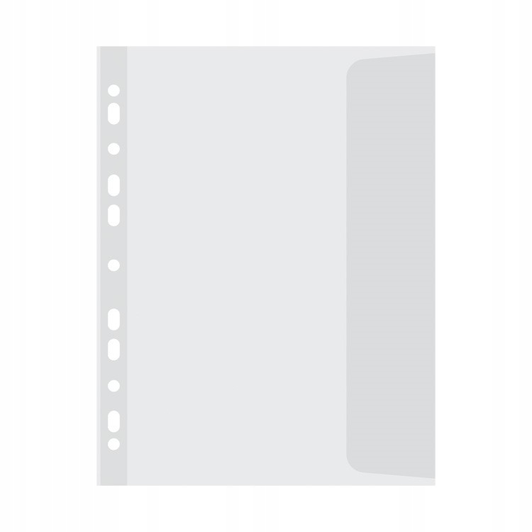 wykonane z miękkiej, gładkiej folii polipropylenowej o grubości 45um, wzmocniony brzeg posiada właściwości antyrefleksyjne krystaliczne, transparentne otwarte na górze antyelektrostatyczne odpowiednie do dokumentów w formacie A4 ilość dziurek do wpięcia: 11 rozmiar: 233x302mm 100 sztuk w j.s. (kartonik) kolor transparentny