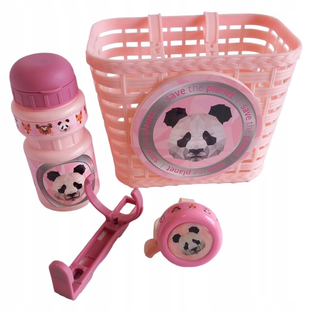 Koszyk: Koszyk rowerowy jest łatwy do zamocowania przy użyciu pasów mocujących. Ma wymiary 170 x 120 x 150 mm, co wystarcza na przechowywanie różnych drobiazgów, takich jak zabawki czy przekąski. Koszyk ma motyw wizerunku różowej pandy