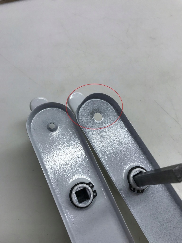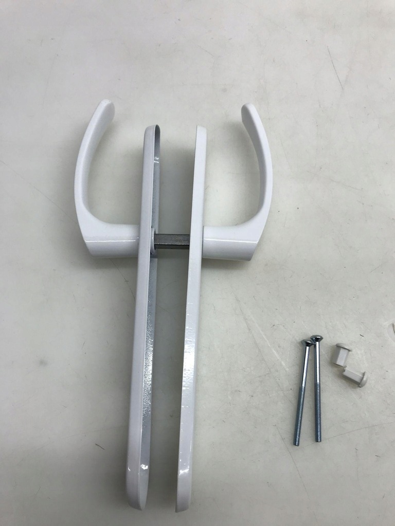 DANE TECHNICZNE - Kolor: Biały - odległość środka klamki od środka rozety: 90 mm - długość całkowita szyldu: 230 mm - szerokość szyldu: 40 mm - odległość pomiędzy otworami montażowymi : 195 mm - kwadrat : 8 mm - grubość drzwi: do ok. 85 mm - całkowita długość kwadratu: 90 mm