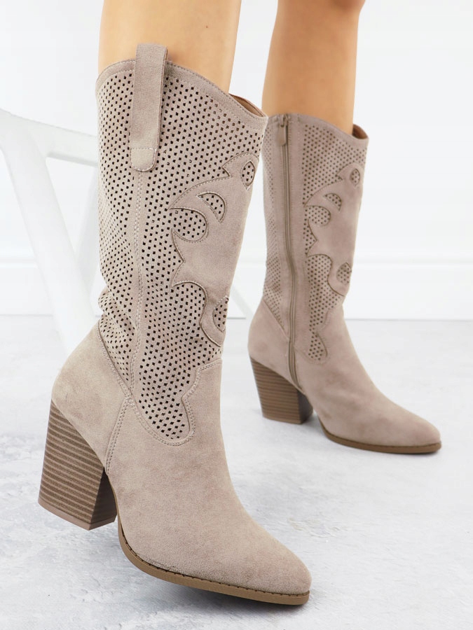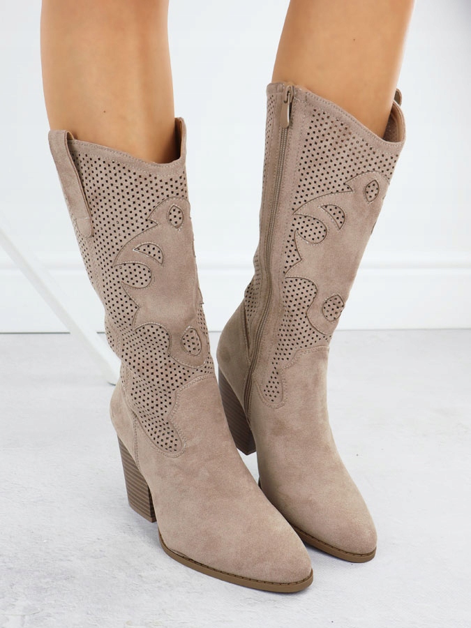 Kozaki damskie ażurowe zamszowe beżowe S.Barski HY51-606