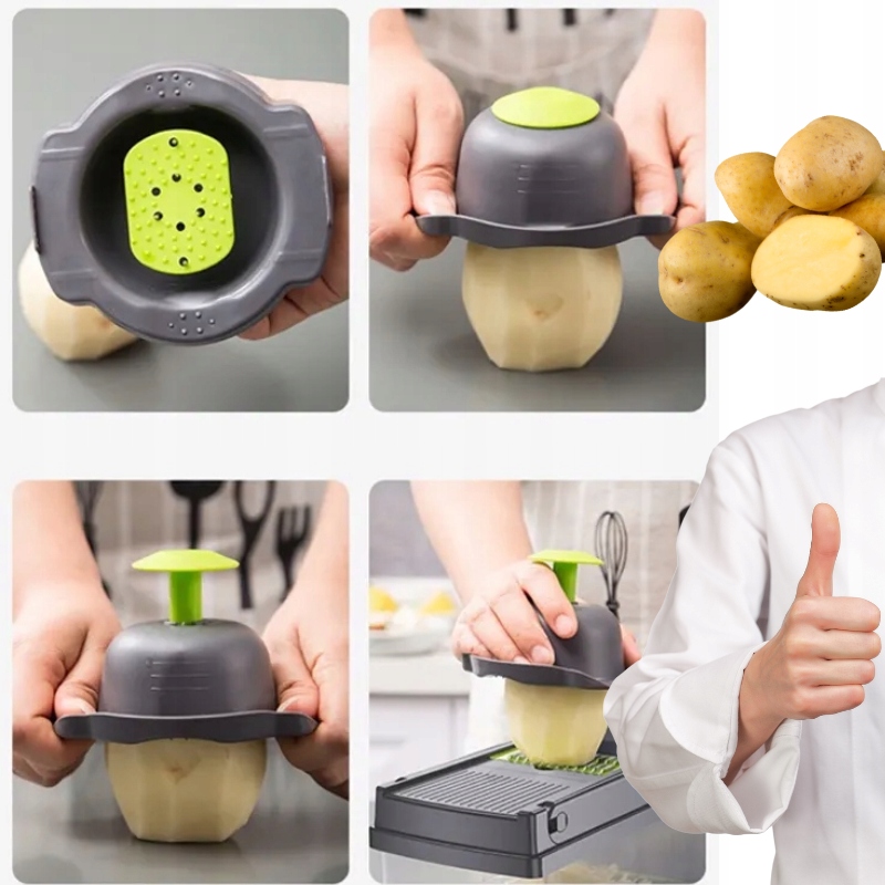 Krajalnica szatkownica 16w1 to wyjątkowe narzędzie, które zmieni sposób przygotowywania potraw w Twojej kuchni. Dzięki temu wielofunkcyjnemu urządzeniu, skrócisz czas spędzony na krojeniu warzyw, owoców i innych składników, jednocześnie zapewniając dokładność i precyzję. To idealne rozwiązanie dla każdego kucharza, który ceni efektywność i wygodę w swojej codziennej pracy