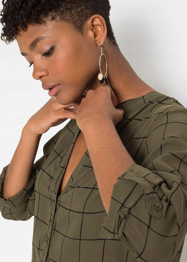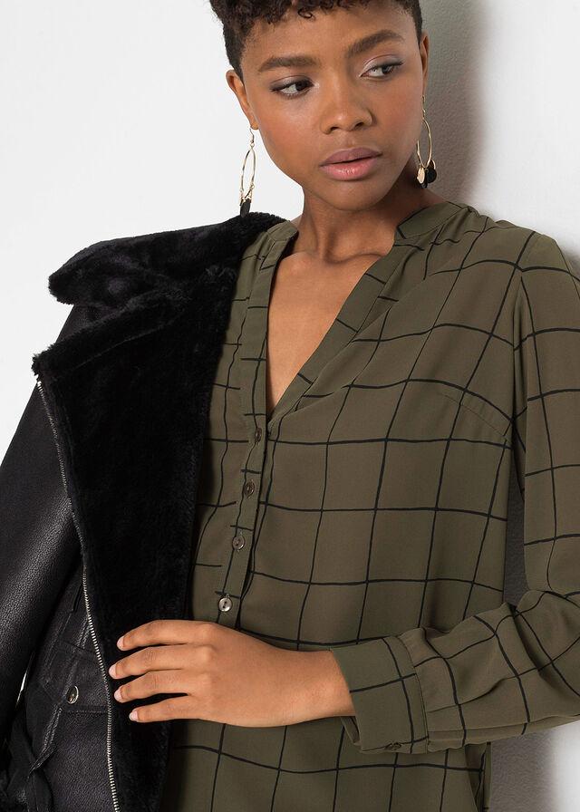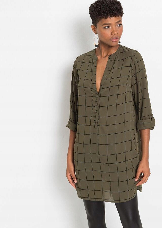 Informacje dodatkowe: Atrakcyjna bluzka koszulowa w kratę z ozdobnymi guzikami.
